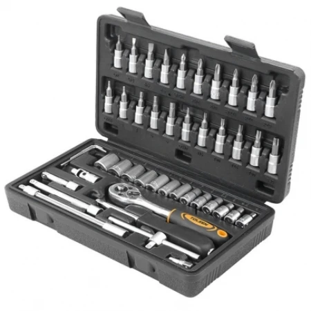 Bộ sản phẩm gồm 46 dụng cụ, có 21 đầu tô vít và 13 đầu vặn ốc với các tay cầm nhỏ nhắn, vừa tiện dụng, vừa có tính thẩm mĩ cao, giúp bạn dễ dàng thay đổi phần đầu vặn theo từng nhu cầu và tính chất công việc. Bộ sản phẩm được dùng để tháo, lắp vít, bu lông hay chỉnh sửa các mối nối, bản lề cửa trong gia đình một cách đơn giản.