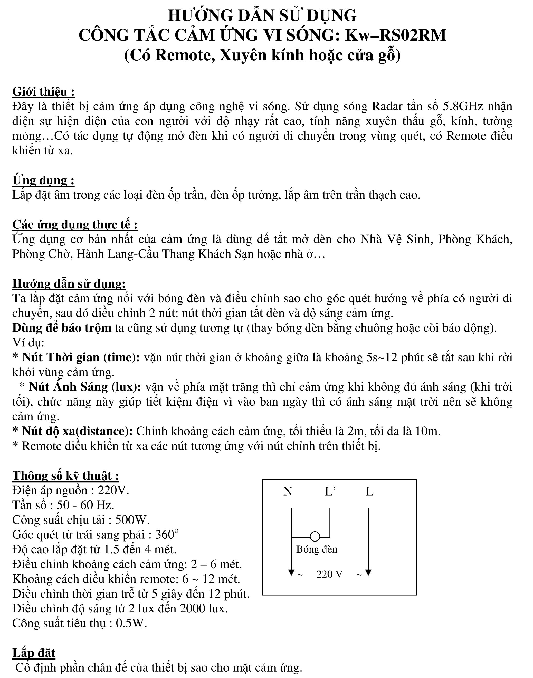 Đây là thiết bị cảm ứng áp dụng công nghệ vi sóng. Sử dụng sóng Radar tần số 5.8GHz nhận diện sự hiện diện của con người với độ nhạy rất cao, tính năng xuyên thấu gỗ, kính, tường mỏng…Có tác dụng tự động mở đèn khi có người di chuyển trong vùng quét, có Remote điều khiển từ xa