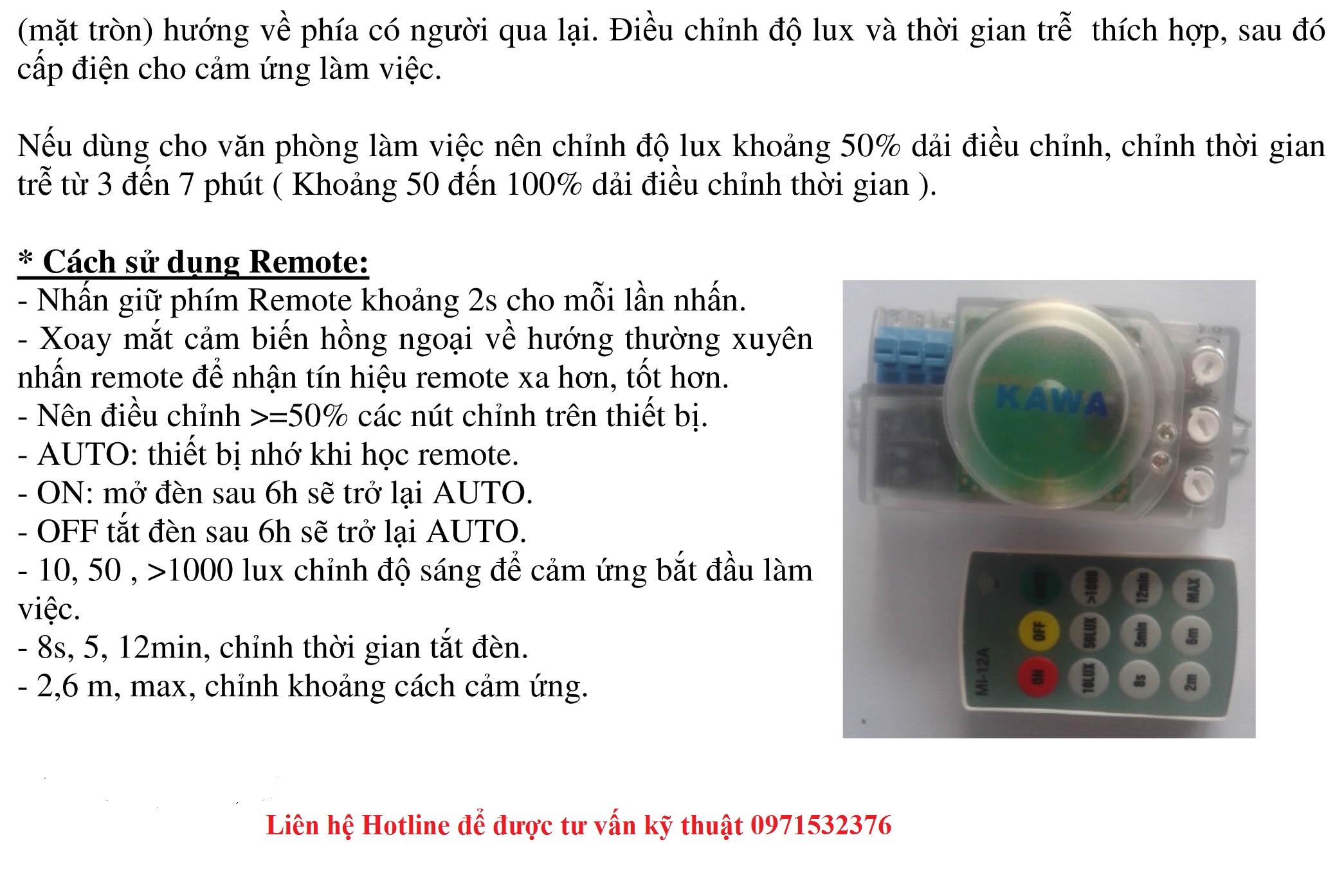 Điều chỉnh khoảng cách cảm ứng: 2 – 6m
