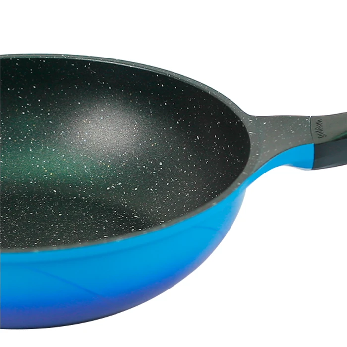 Lòng chảo sử dụng chất chống dính sumo cao cấp của Nhật an toàn cho sức khỏe, không chứa PFOA chịu được ở nhiệt độ cao, được thiết kế kiểu sâu lòng sử dụng để nấu các món xào như: xào rau, xào thịt.