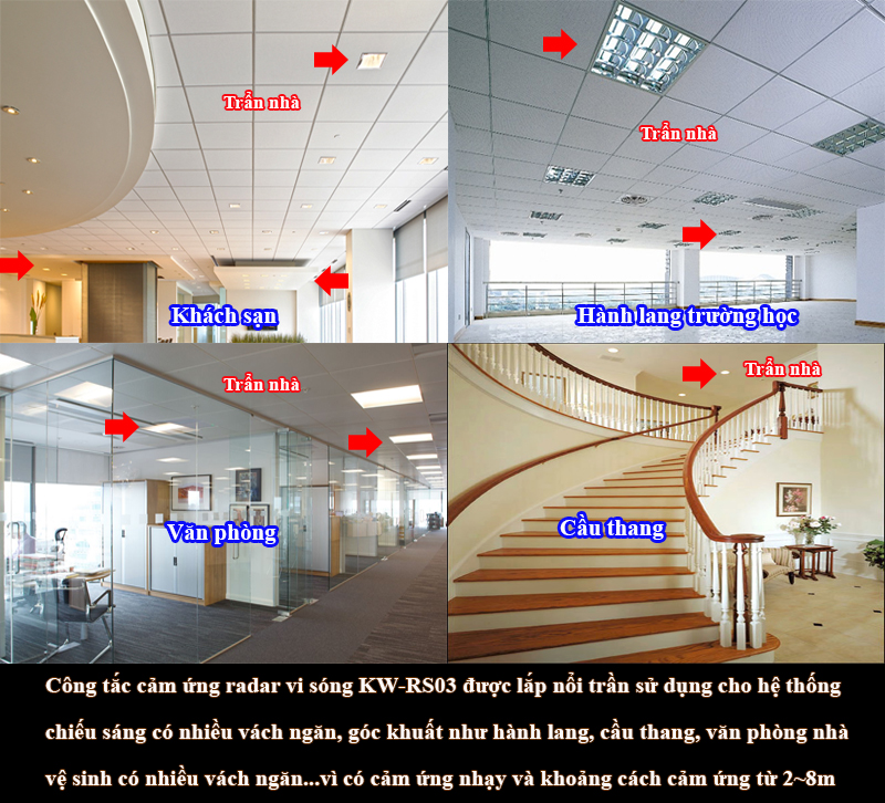 Có thể lắp lắp dấu lên trần biến nó thành công tắc cảm ứng mà không nhìn thấy, tránh nổi ra ngoài làm mất thẩm mỹ