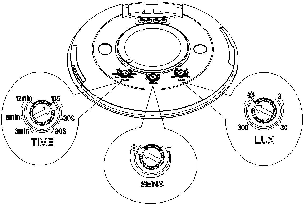 Nếu người dùng cần điều chỉnh nút LUX xoay về phía “mặt trăng “thì cảm biến chỉ được kích hoạt trạng thái nhận chuyển động thân nhiệt trong vùng quét để bật đèn khi môi trường thiếu ánh sáng (tối), nghĩa là chỉ cảm ứng bật đèn trong môi trường tối (hoặc mờ tối tuỳ mức độ điều chỉnh nút Lux)