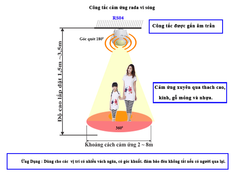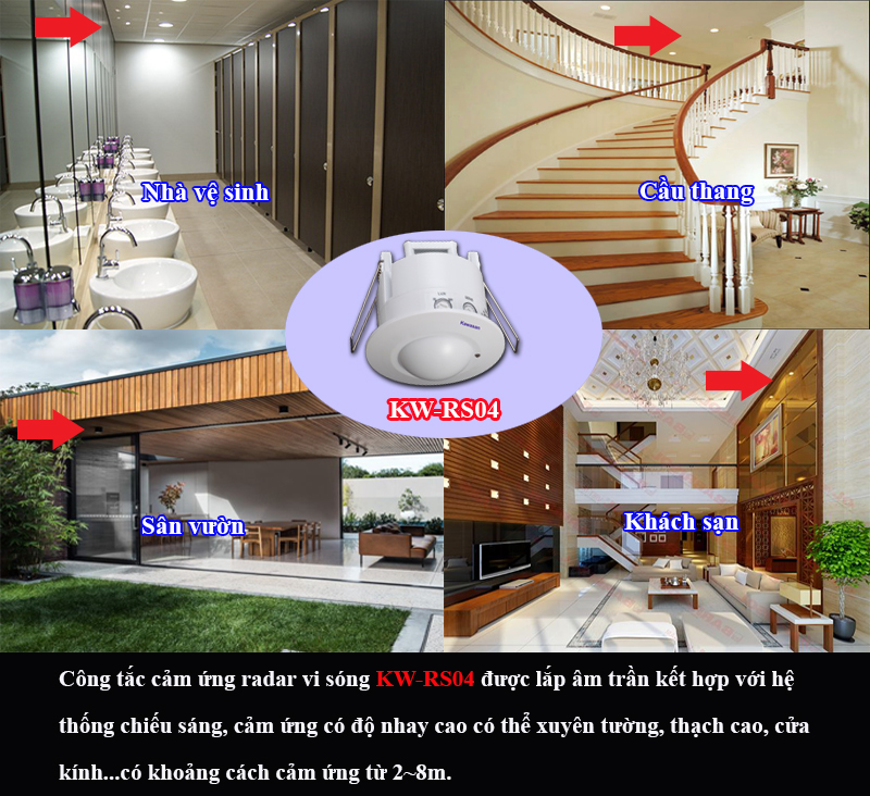 Mở - Tắt đèn tự động cho nhà vệ sinh. Đèn hành lang,cầu thang ,âm trong máng đèn , ban công gia đình, chống trộm…