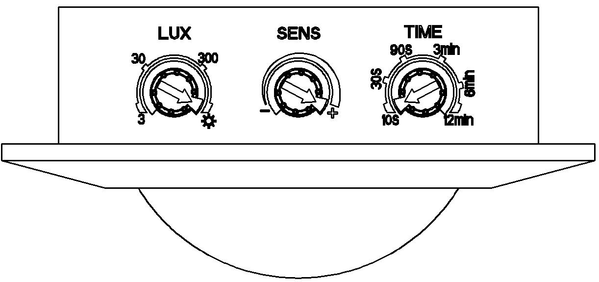 Nếu người dùng cần điều chỉnh nút LUX xoay về phía “mặt trăng “thì cảm biến chỉ được kích hoạt trạng thái nhận chuyển động thân nhiệt trong vùng quét để bật đèn khi môi trường thiếu ánh sáng (tối), nghĩa là chỉ cảm ứng bật đèn trong môi trường tối (hoặc mờ tối tuỳ mức độ điều chỉnh nút Lux)