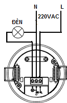 Kết nối dây nguồn và tải cho cảm ứng như sơ đồ bên ( Teminal N và L đấu vào nguồn điện 220v, N và L' ra đèn)