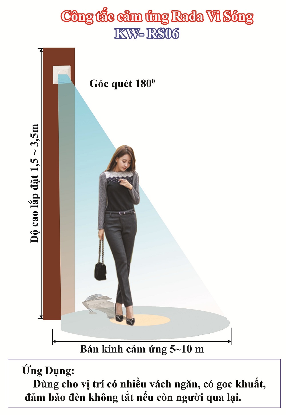 Nút SENS: Điều chỉnh khoảng cách phát radar để nhận chuyển động.khoảng cách chỉnh tối thiểu 2m“Dấu - “ khoảng cách chỉnh tối đa 12m“Dấu + “