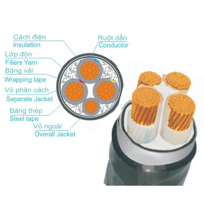 Dây Cáp Điện Trần Phú, Cáp ngầm CXV-DSTA 3x185+1x95