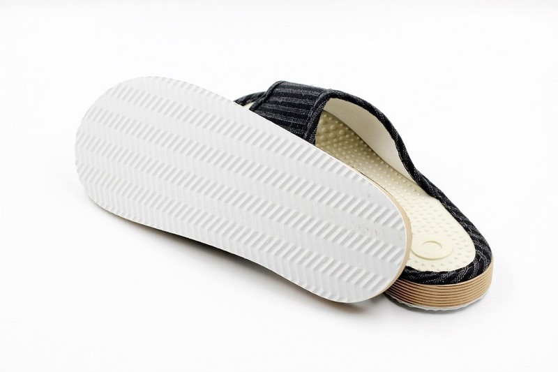 Thân dép bằng vải, phần đáy bằng nhựa mềm có các hạt massage giúp lưu thông máu tại gan bàn chân tốt hơn