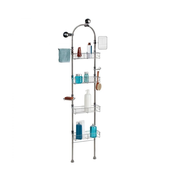 Giá để đồ nhà tắm được làm từ chất liệu thép không gỉ cao cấp không bị hoen gỉ trong môi trường ẩm ướt, 4 tầng cao ráo thoải mái để đồ.