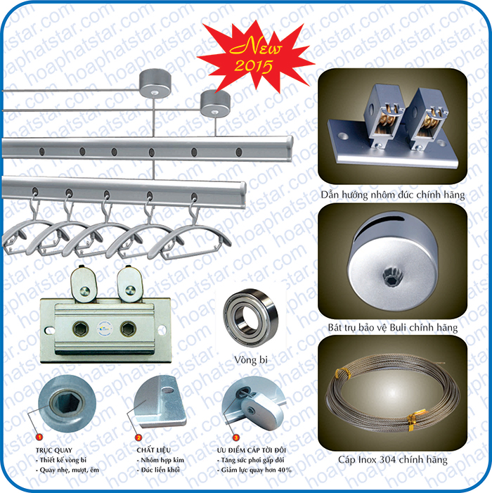Thanh phơi: với chất liệu hợp kim nhôm nguyên khối được phun sơn tích điện (có 60 lỗ để treo quần áo)
