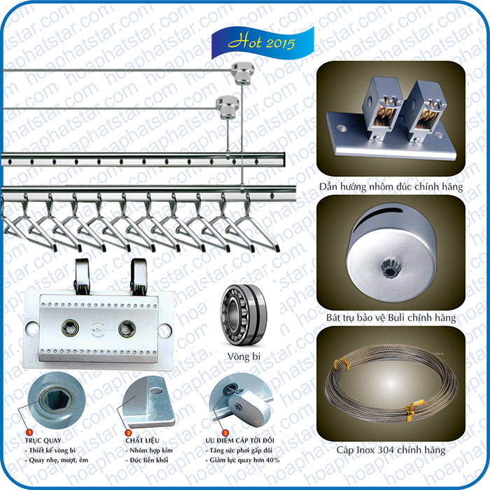 Thanh phơi: với chất liệu hợp kim nhôm cao cấp