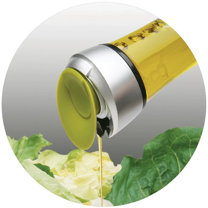 Công dụng: Dùng để đựng dầu ăn hoặc giấm ăn với vỏ lọ được làm từ thủy tinh, nắp được mạ niken bóng đẹp. Cách sử dụng vô cùng đơn giản với điều khiển bằng nút ấn silicon với 3 màu sắc để lựa chọn là: xanh lá, đỏ, đen