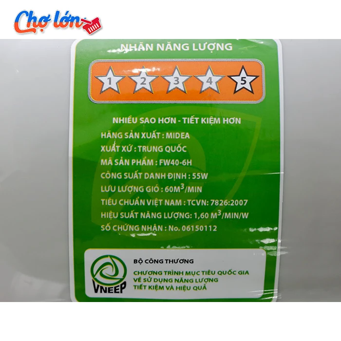Sản phẩm đạt tiêu chuẩn 5 sao về tiết kiệm năng lượng