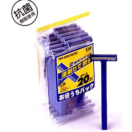 - Gồm 20 cây dao cạo. Lưỡi dao được thiết kế gồm 2 lưỡi thép. Không thay thế được lưỡi, bỏ đi sau khi lưỡi dao đã cùn.