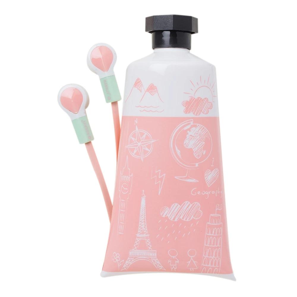 Tai nghe được nhỏ gọn, kèm theo 1 túi đựng được ngụy trang như dạng một tuýp kem cùng màu tai nghe, rất tiện để mang theo người và là một phụ kiện để trang trí khẳng định cá tính người dùng