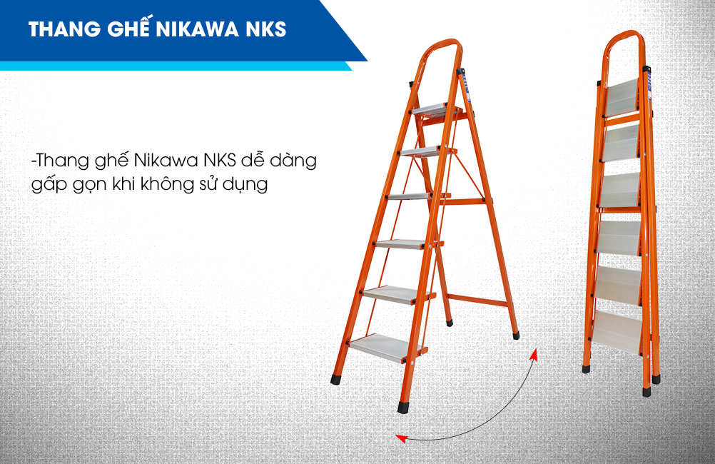 Thiết kế nhỏ gọn, mở ra kéo vào linh hoạt,dễ dàng, thang ghế Nikawa NKS-04 là sự lựa chọn tối ưu cho những công việc như vệ sinh nhà sửa, thay hoặc sửa bóng đèn, lau cửa kính, lấy đồ vật trên cao, cắt tỉa cây cảnh,…