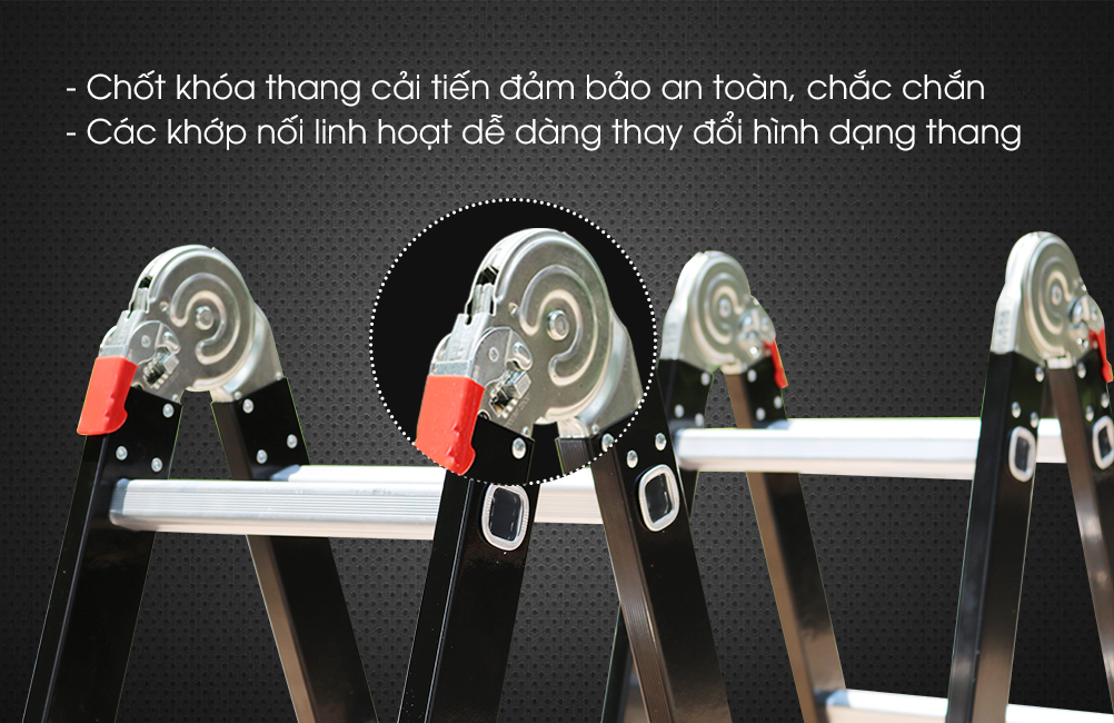 Các chốt khóa rất dễ sử dụng để tạo thành các tư thế thang để sử dụng.