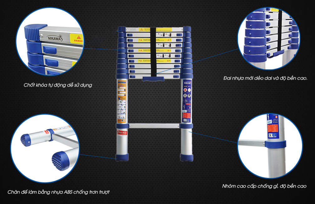 Tình năng vượt trội thang nhôm rút đơn Nikawa NK-38 :